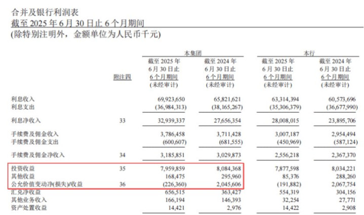 具体而言,2025年上半年,江苏银行的投资收益和公允价值变动损益分别为79.6亿元、-2.26亿元,均较上年同期萎缩,特别是公允价值变动损益由盈转亏,对业绩造成拖累。